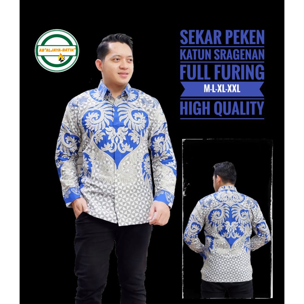 Name: Batik Solo Kemeja Batik Solo Lengan Panjang Lapis Furing Sekar Peken Aljaya Peksi Biru Parang Sekti