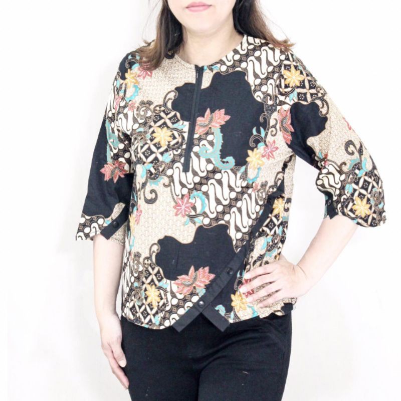 Produsen Pakaian W di Kabupaten Musi Rawas W-24 Atasan Batik Wanita Katun Strecth Lengan 3/4 Untuk Kerja Kantoran Modern dari Bfash Online Kota Jakarta Barat